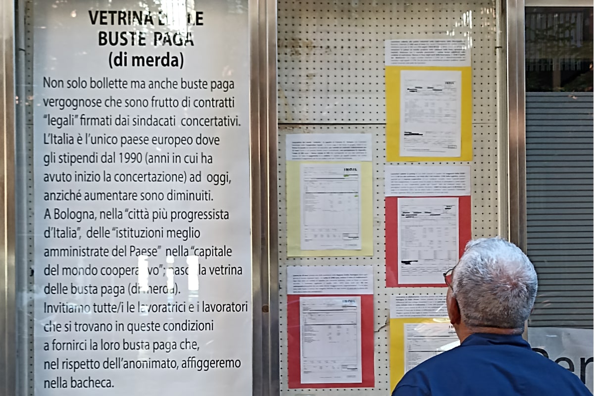 La vetrina di questo pomeriggio sarà composta da ulteriori buste paga. In particolare, quelle di un’educatrice delle cooperative sociali del settore nido d’infanzia, un servizio pubblico in appalto alla Città Metropolitana di Bologna, quella di un’educatrice ai servizi educativi domiciliari in appalto all’Asp Città di Bologna, quella di una lavoratrice in appalto ad un noto albergo di Bologna in zona aeroporto ed infine quella di un lavoratore addetto agli appalti della sicurezza di Bologna Fiere.
