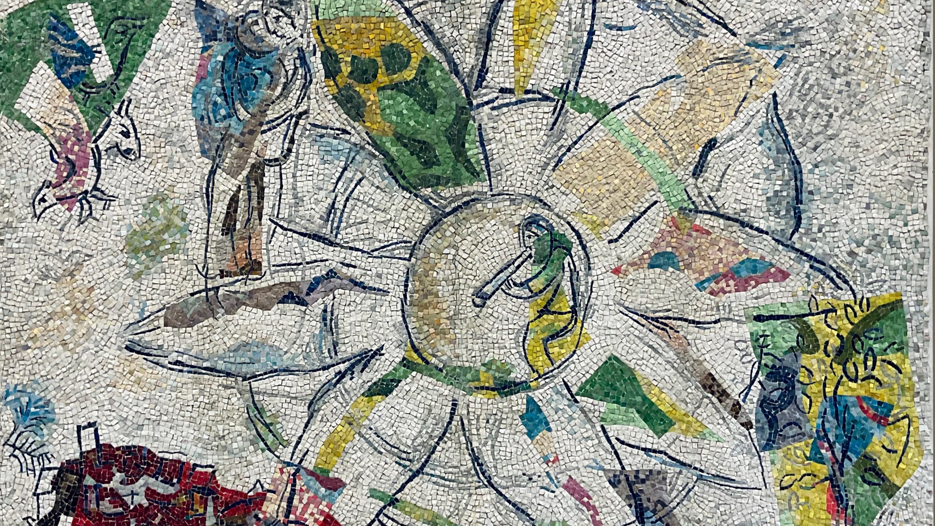 Dal 18 ottobre quindi si inaugura la mostra “Chagall in mosaico, dal progetto all’opera” ponendosi così come apriporte per la biennale del mosaico moderno di Ravenna, che per i prossimi mesi movimenterà le sale espositive ravennati, con installazioni, mostre ed eventi. Ma non solo collaborazioni cittadine e regionali, in quanto questa mostra è infatti una coproduzione tra MAR, GrandPalaisRmn e il Musée national Marc Chagall, di Nizza, avvalendosi anche della collaborazione con Archives & Catalogue raisonné Marc Chagal, garantendo così un’ esperienza, unica e completa, frutto dello sforzo combinato di diverse realtà, italiane e francesi. La collaborazione e il tema del viaggio, della scoperta, è qualcosa di estremamente percepibile in sede esplorativa, in quanto uno dei principali punti di di interesse della mostra è lo studio progettuale per “le coq bleu” primo mosaico di Chagall, realizzato in due versioni da due grandi mosaicisti ravennati, Romolo Papa e Antonio rocchi, sulla base del bozzetto realizzato dall’artista. Non solo saranno esposte per la prima volta insieme, rendendo così possibile osservare progetto e opera allo stesso momento, ma sarà dedicato anche uno spazio di approfondimento, ai mosaicisti ravennati che hanno collaborato con Chagall.