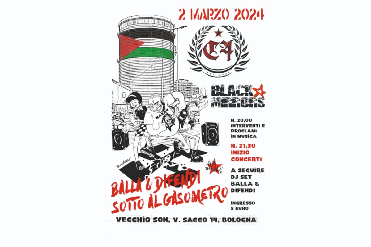 Alle 21.30, invece, cominceranno i concerti, che vedranno salire sul palco i C4-Combat Rock, una band street punk sarda, i bolognesi Black Mirrors, band punk rock tra Clash e Dead Kennedys, e gli Oltre la Linea, che fanno Oi! dalla Provincia. A seguire il dj set della Balla e Difendi Crew.