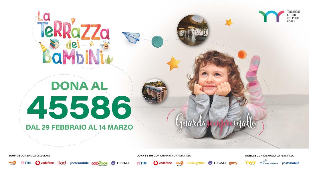 La Terrazza dei bambini è uno spazio molto esteso: circa 800 metri quadri di spazi coperti polifunzionali. Si trova sulla terrazza del monoblocco ospedaliero che si trova a fianco della parte monumentale del Rizzoli. Da considerare che al Rizzoli 30 pazienti su 100 sono bambini, e quindi l’essere riusciti a creare degli spazi per le degenze più lunghe è un intervento particolarmente rilevante, oltre ad essere un’opera che porta felicità a chi la riceve e a chi l’ha resa possibile.