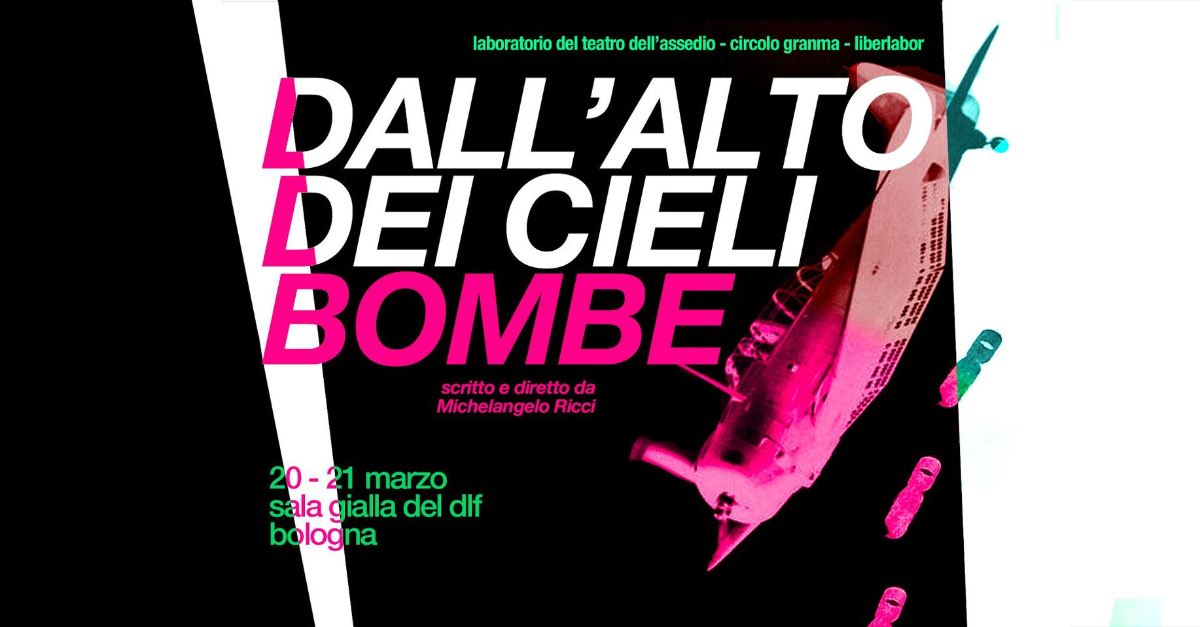 Il 20 e il 21 marzo al DLF Dopolavoro Ferroviario andrà in scena “Dall’alto dei cieli bombe”, spettacolo generato dal Laboratorio del Teatro dell’Assedio all’Officina del popolo Valerio Evangelisti, in collaborazione con il Circolo Granma.