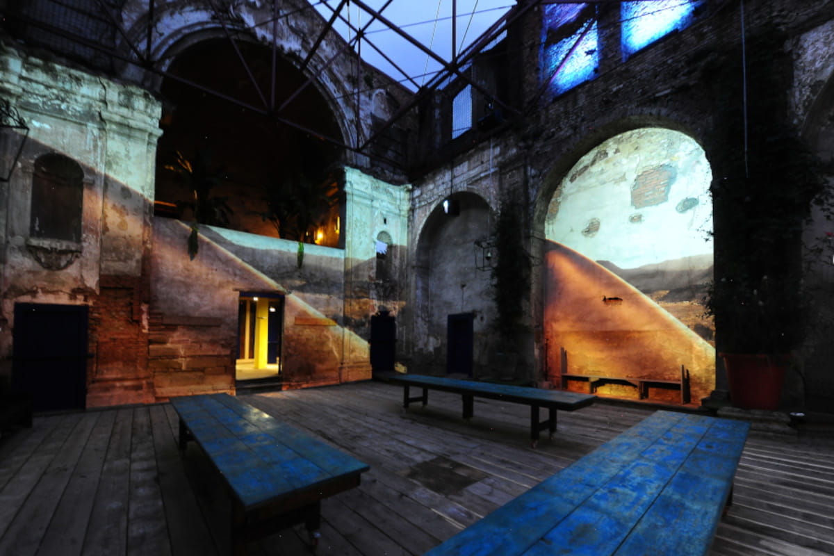 La struttura, che affonda le radici nel XII secolo e fu ricostruita nel 1576 dall’architetto Pietro Fiorini, ha vissuto secoli di storia prima di essere sconsacrata in epoca napoleonica e gravemente colpita dai bombardamenti della Seconda Guerra Mondiale (con la successiva rimozione del tetto negli anni `60 per criteri di tutela e sicurezza). Oggi, quella che per lungo tempo è stata una suggestiva rovina a cielo aperto — utilizzata eccezionalmente nel dopoguerra come palestra della Fortitudo, come spazio per le esercitazioni della scuola di scherma bolognese e perfino per le prove del cantante Morgan — si trasforma in una piazza culturale contemporanea. Attraverso un attento lavoro di rifunzionalizzazione, la nuova gestione ha saputo preservare l’anima dell’antico edificio, lasciando che la vegetazione spontanea diventasse parte integrante dell’architettura in una sorta di “natura sospesa”.